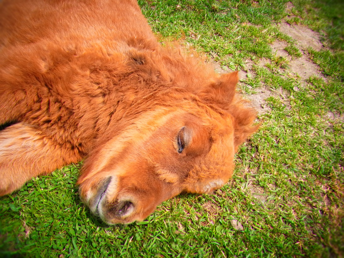 ↑もしゃもしゃと草を食べてるか、無防備に地面に転がっているかのラマちゃん。