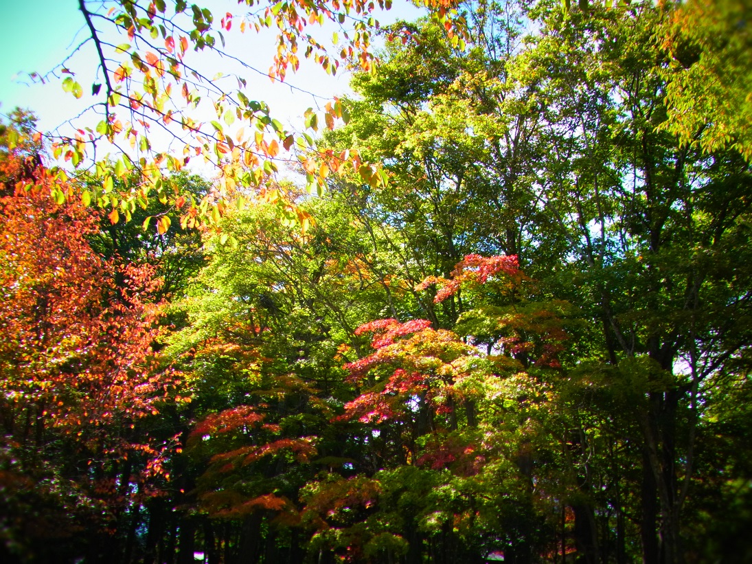 ↓中軽井沢、ハルニレテラス付近の紅葉状況(10月8日)です。