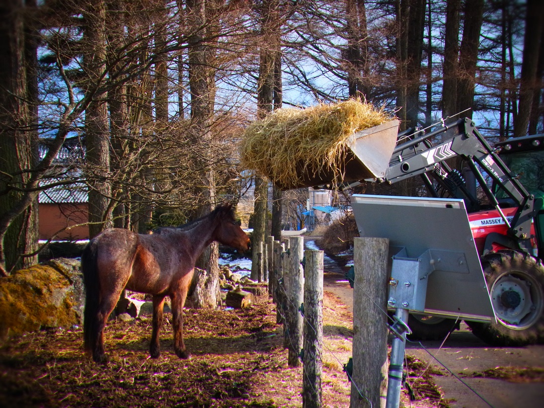 放牧場では、頭の良いチャリ君が新しいご飯を待っていました。