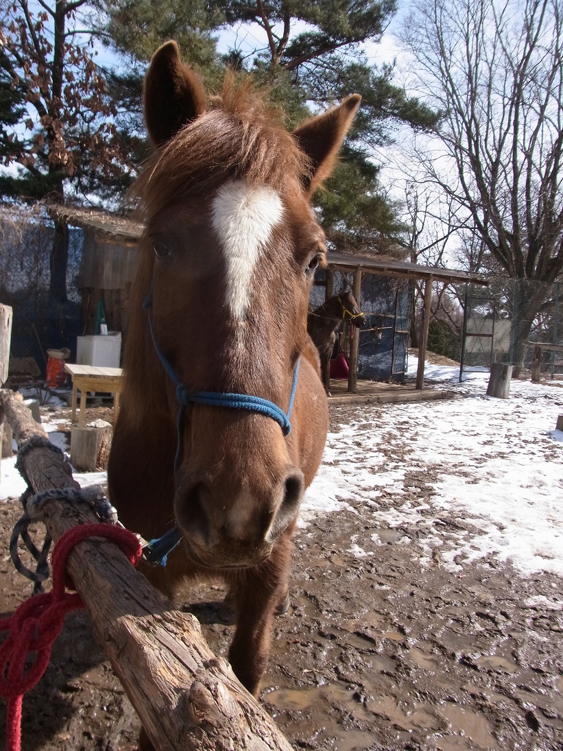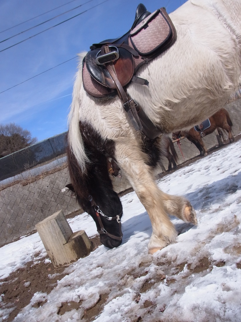 馬場に戻ると、馬場にうっすら積もっていた雪は融け、