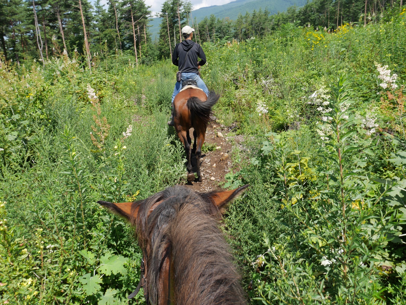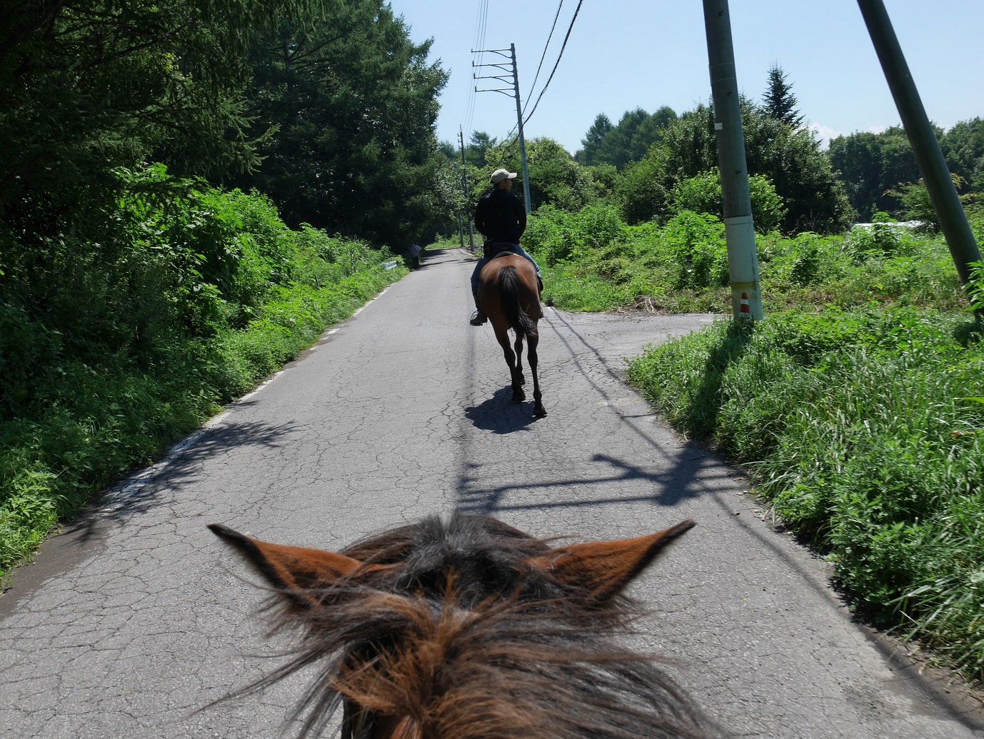 木陰を常歩で行くのも、夏の外乗の醍醐味というような感じです。